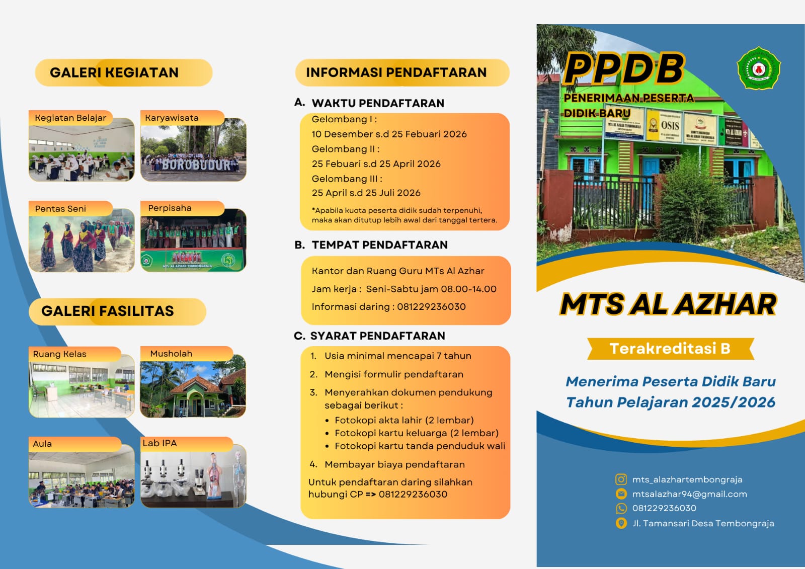 Brosur PPDB MTs Al-Azhar Tembongraja Tahun 2026-2027